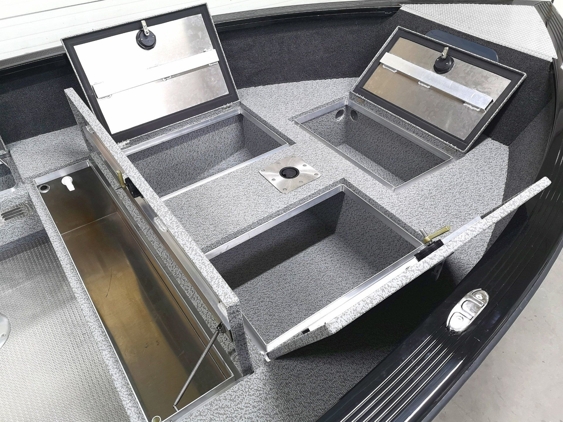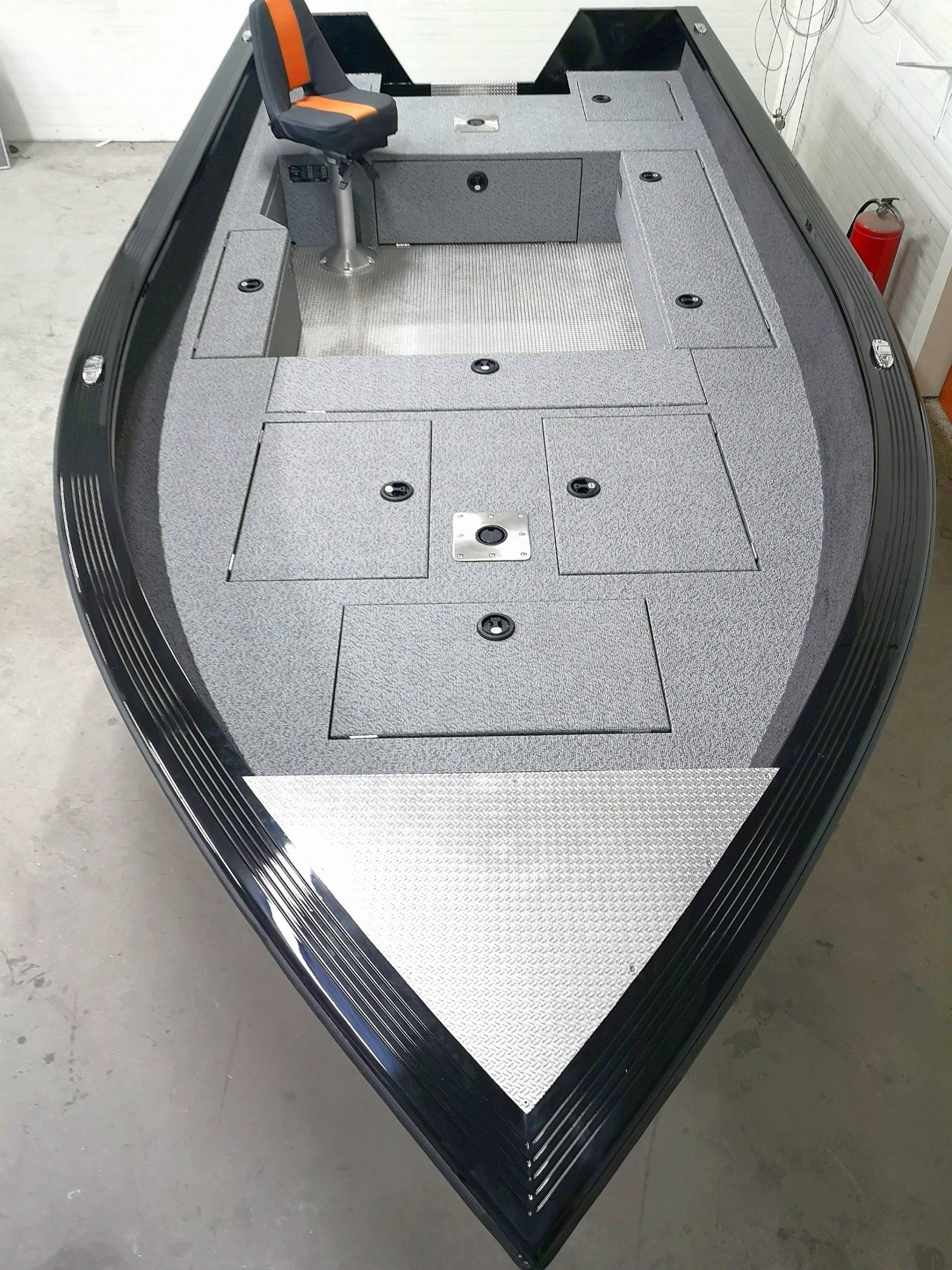 ermöglicht ein komfortables Angeln für drei Angler. Ein einzigartiges Design des Tangiri STRIN 460 Rumpfes erlaubt es uns, es als das haltbarste Boot seiner Klasse zu bezeichnen. Das 460er ist mit Abstand unser meist verkauftes Boot. Es eignet sich für große Gewässer und hohe Wellen. Darüber hinaus ist das 460er aber noch leicht und klein genug um es fast überall mühelos zu slippen. Außerdem es lässt sich auch in Buhnenfeldern noch gut manövrieren. Wenn du eine größere Garage hast, dann passt dieses Boot auch noch hinein.